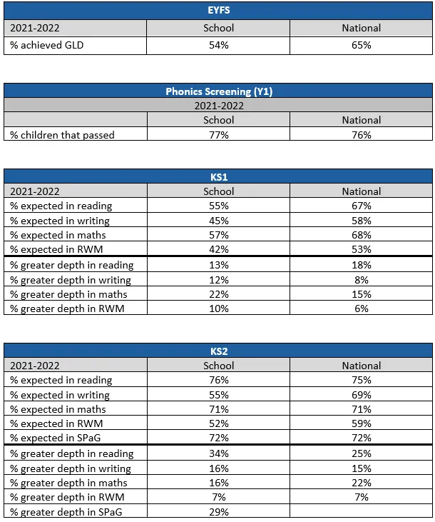 All primary schools in the country are required to publish their data from any statutory assessments taken by our children. We are incredibly proud of how well our children achieve and our results are consistently above local and national averages. However, statutory assessments are only one small part of the broad and balanced curriculum that we offer to our children.